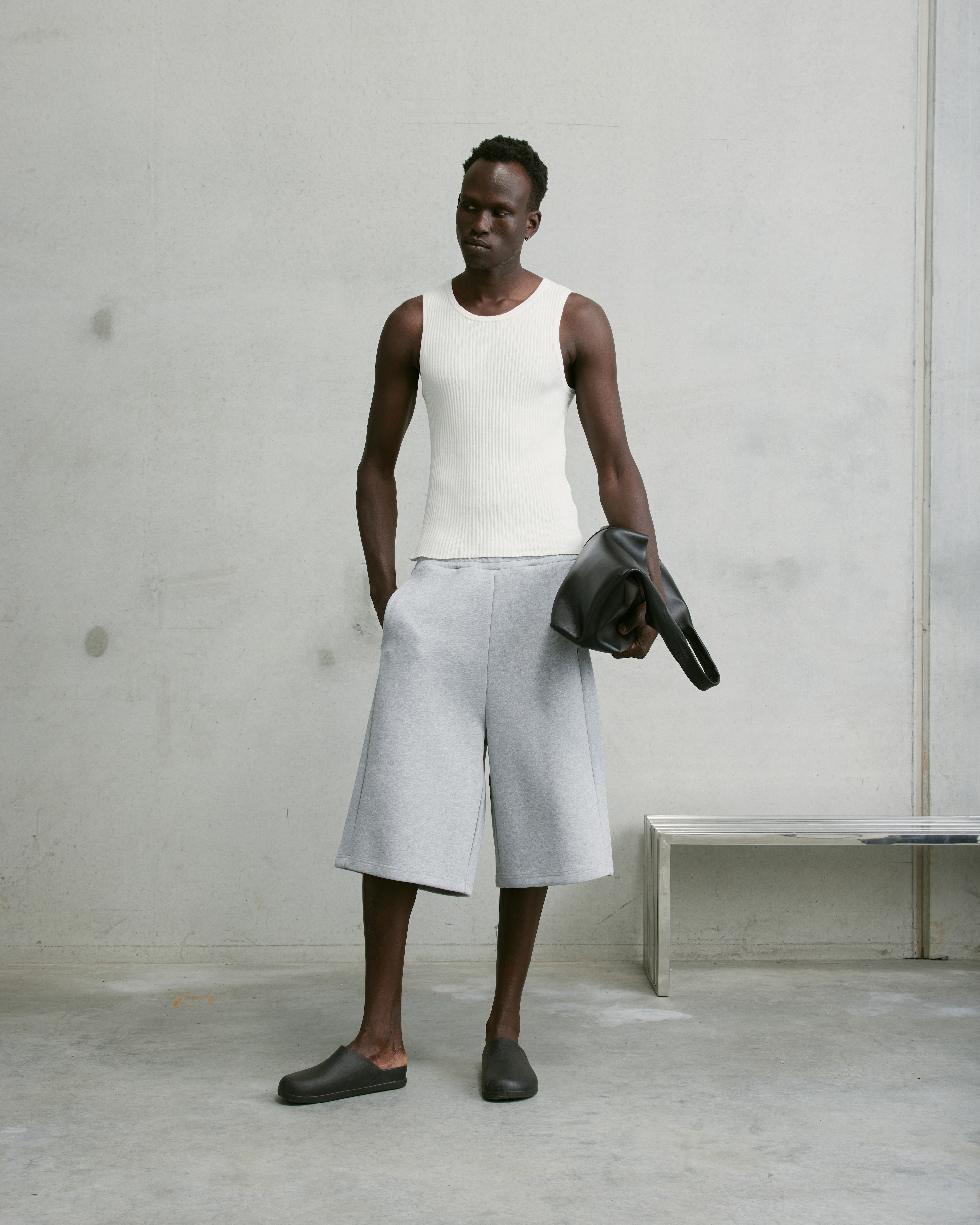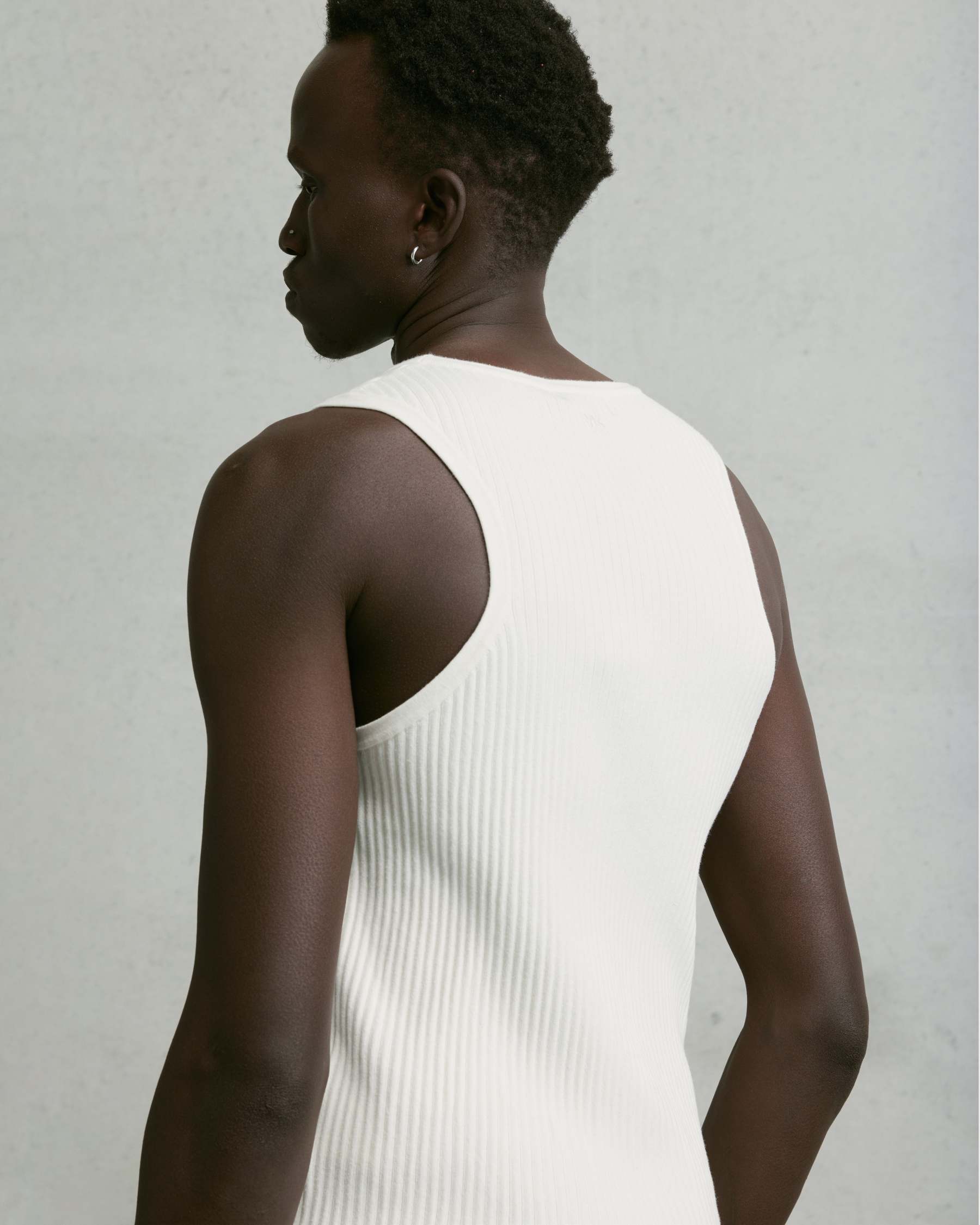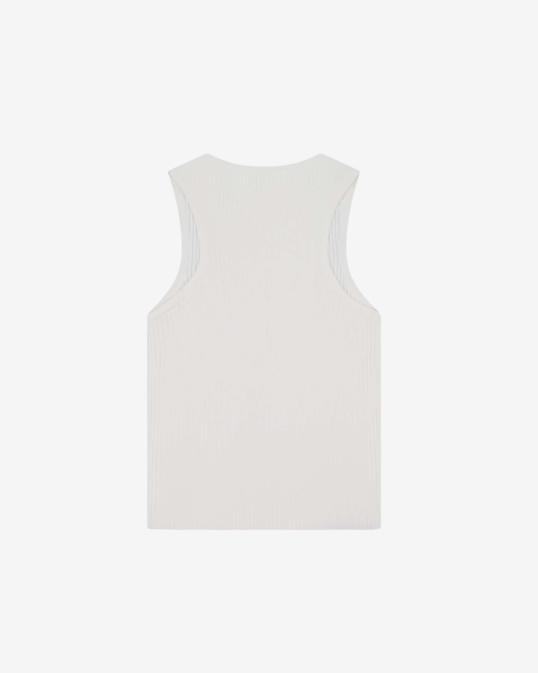 The Nothing Rib Knit Tank is a slim, ribbed cotton tank designed for a comfortable, relaxed fit. Finished with subtle embroidery at the back of the neck for a minimal detail.