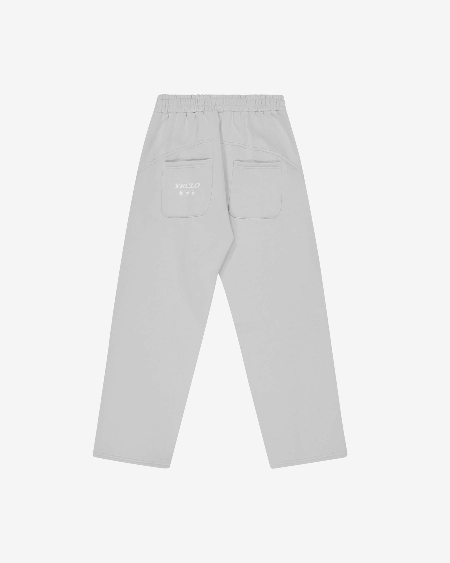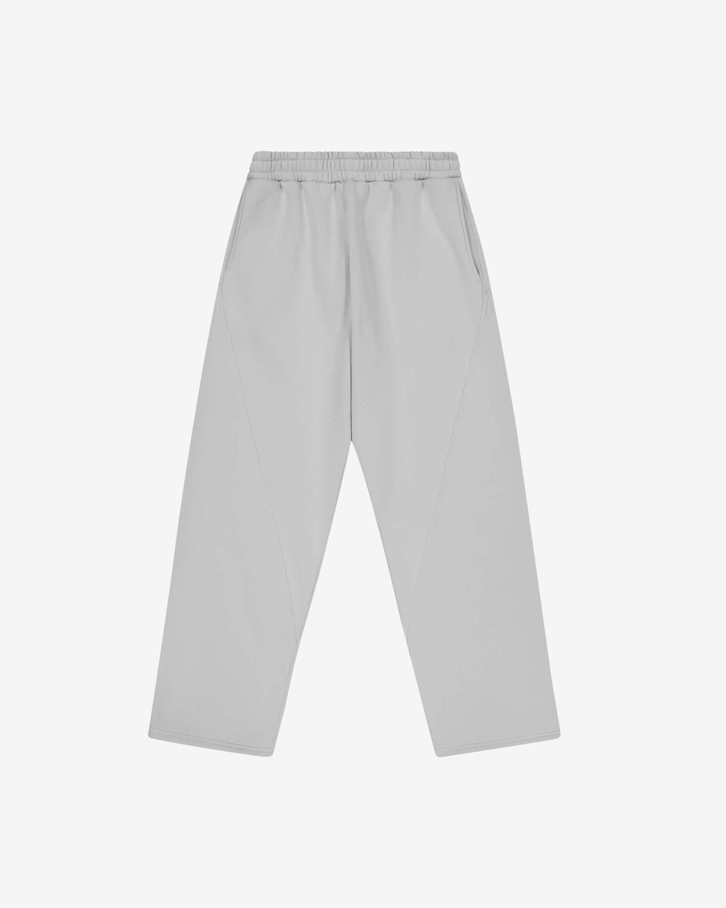 The Panelled Trackpants feature a baggy, oversized fit in heavyweight fabric. Seam lines run across the front for subtle structure, and an embroidered detail on the back pocket adds a signature touch.