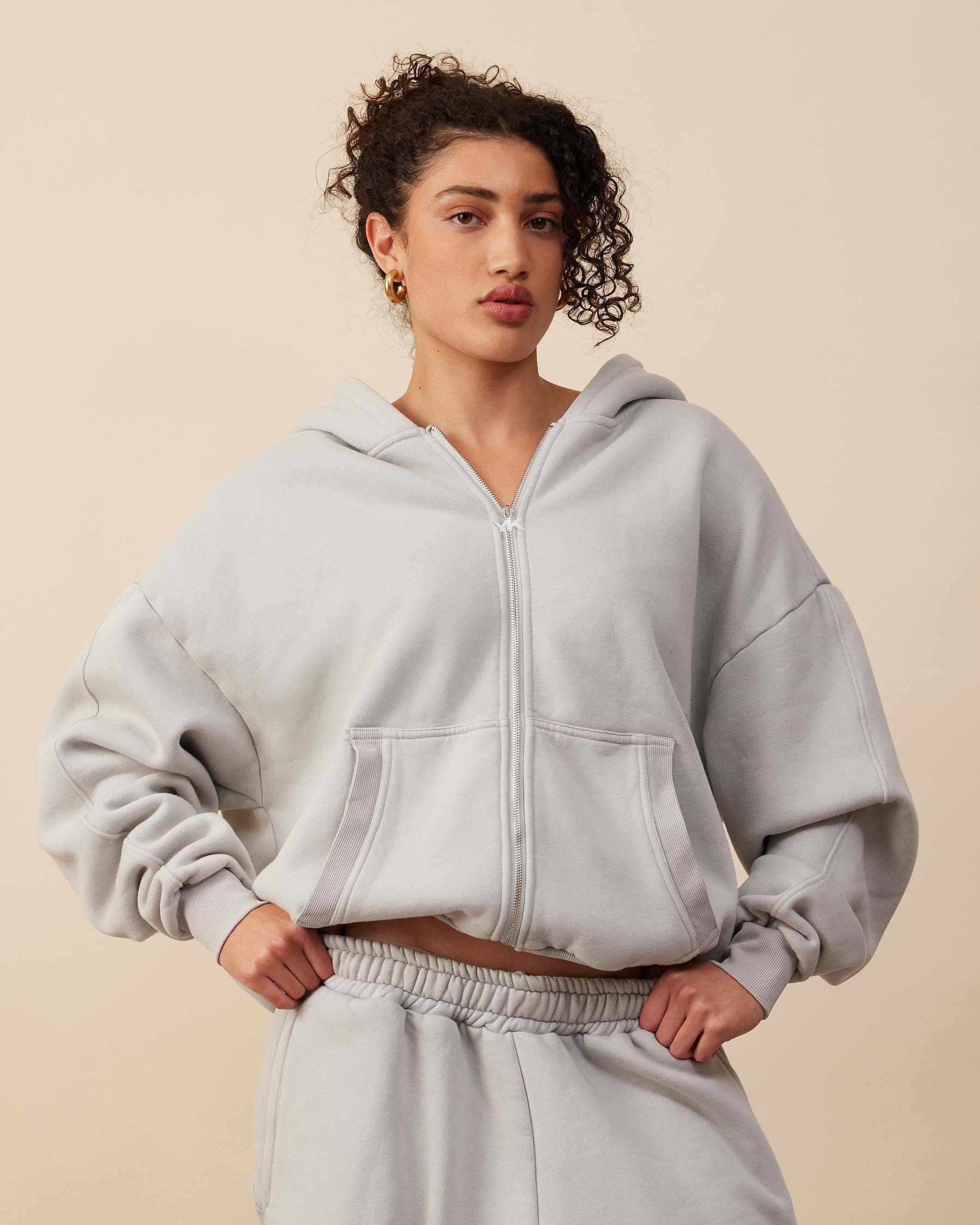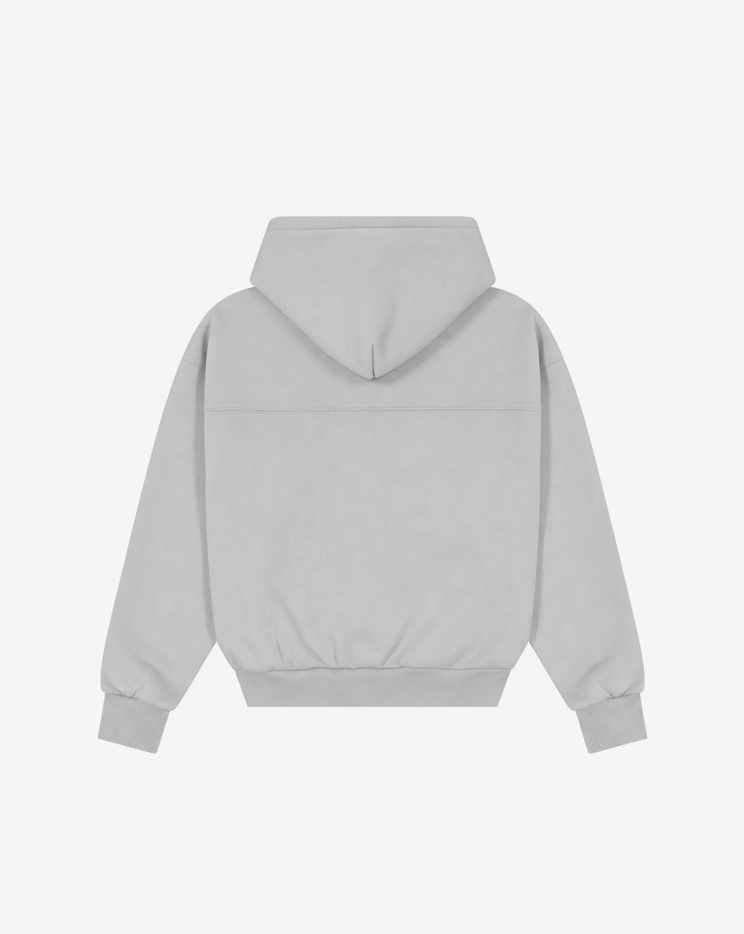 The Panelled Zip-Up Hoodie is a heavyweight, boxy-fit hoodie with a full front zip. Seam lines run along the arms and back for subtle structure, while an embroidered logo and a signature YK zipper add distinctive finishing touches.