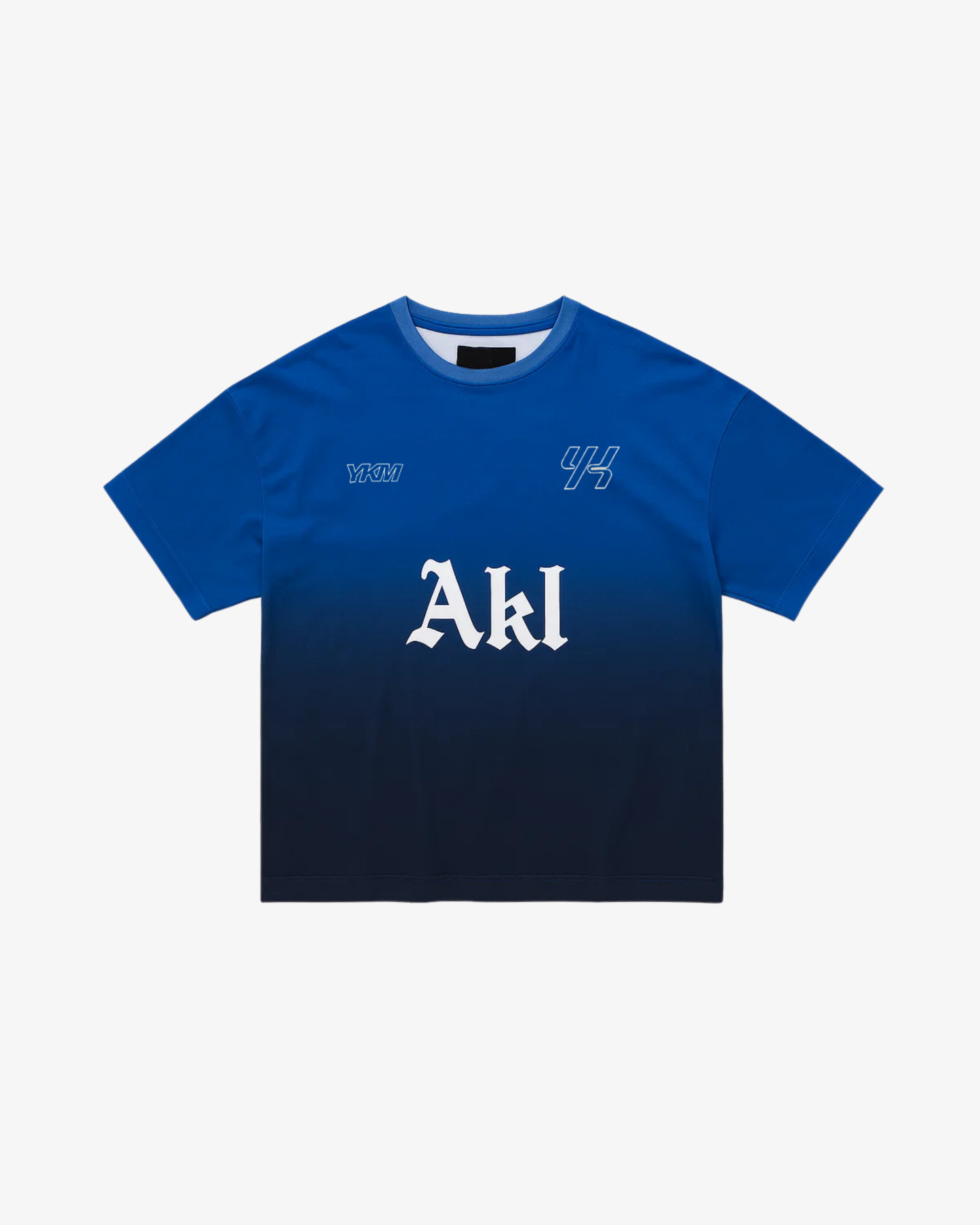 Screenprint graphics on front and back, in a blue gradient colourway